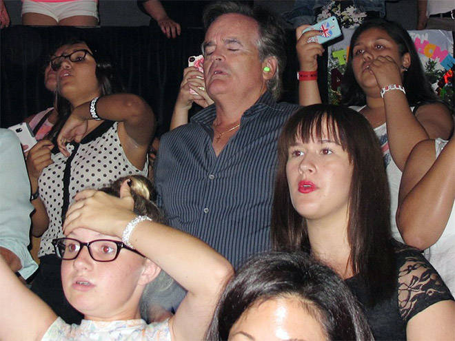 Il top della disperazione lo raggiunge il genitore che decide di non mandare da sola la figlia al concerto del suo idolo musicale. Tra i gruppi più gettonati del momento ci sono i One Direction. Questi padri hanno preso posto tra fan deliranti pur di scortare le figlie, attendendo per ore l‘inizio dell’esibizione della boyband britannica. A giudicare dalle loro espressioni, non deve essere stata un’esperienza entusiasmante.