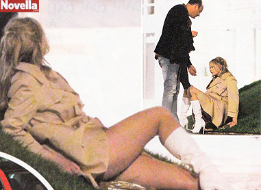 Per i 58 anni dell’amica Barbara D’Urso, Anna Falchi non si è risparmiata ballando fino a tarda notte incurante dei trampoli portati ai piedi. Bellissima in versione “Brigitte Bardot” con tanto di stivaloni bianchi e abito luccicante, la Falchi era scortata dal compagno Andrea Ruggieri. Al termine della festa, come documentano gli scatti pubblicati da “Novella 2000”, complice la stanchezza e qualche bicchiere di troppo, la bella Anna si è accasciata sul prato di un’aiuola. Il fidanzato non l’ha persa di vista neanche un attimo in attesa dell’auto di un’amica.