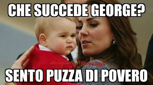 La satira (cattivissima) ha preso di mira persino il principino George, primogenito di William d’Inghilterra e di Kate Middleton. Il piccolo, amatissimo dagli inglesi, è protagonista di un’ironica serie di meme raccolti nella pagina Facebook “Baby George ti disprezza”.