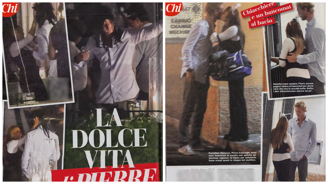 Notte di bagordi per Pierre Casiraghi che ha festeggiato allo Yacht Club di Portofino la sua vittoria alla regata Rolex Trophy. Nella prima parte della serata è presente anche la neo moglie Beatrice Borromeo che però è andata a letto presto. Come mostrano gli scatti di “Chi”, una volta rimasto da solo, Pierre si fa aiutare da una biondina ad indossare una parrucca nera e un rinforzino per i pettorali. Da quel momento, i due entrano in confidenza, ballano, chiacchierano fitto fitto, si tengono un po’ per mano e , all’alba, lui l’accompagna e ci scappa un bacio.