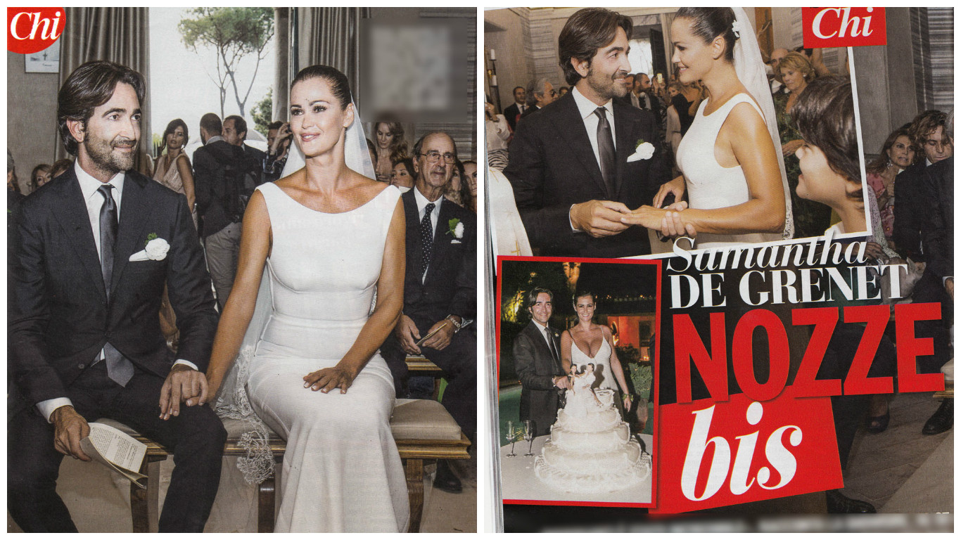 Nozze bis per Samantha De Grenet e Luca Barbato. Venerdì 18 settembre, a distanza di 10 anni dal loro primo matrimonio interrotto nel 2007, i due – genitori di un bambino di nome Brando – si sono detti sì una seconda volta a Roma. La sposa indossava un abito firmato dalla stilista Betta Guerreri.