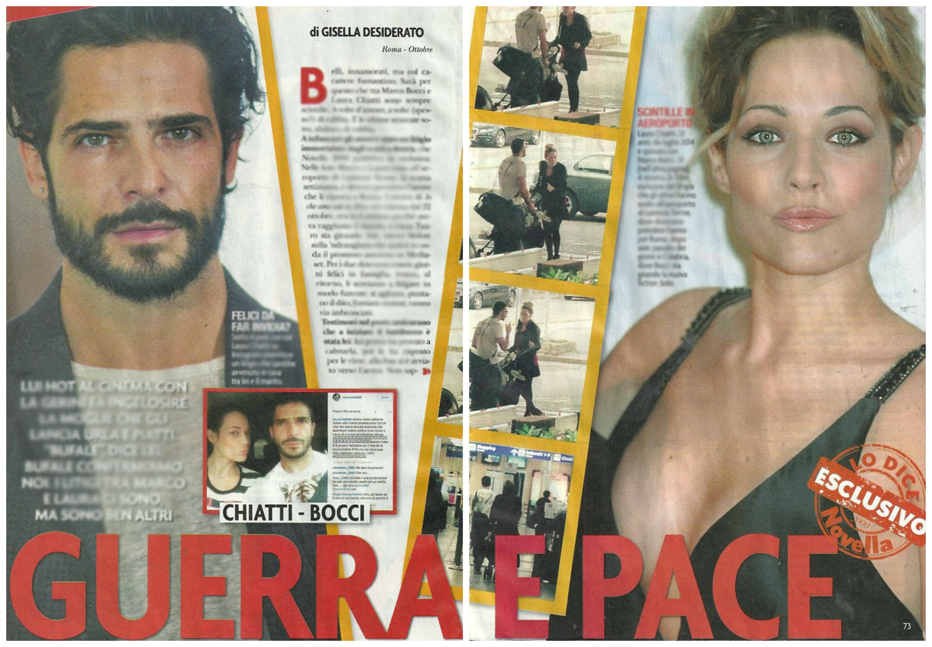 L’amore non è bello se non è litigarello. Ne sanno qualcosa Marco Bocci e Laura Chiatti beccati a litigare all’aeroporto di Lamezia Terme. I due attori, genitori di Enea, sono stati paparazzati dai fotografi di “Novella 2000” nel bel mezzo di un alterco. Secondo il magazine, a dare inizio al battibecco sarebbe stata la Chiatti. Bocci avrebbe dapprima tentato di calmarla, poi le avrebbe risposto per le rime allontanandosi verso l’aereo. Sempre secondo “Novella 2000”, la lite in aeroporto non avrebbe nulla a che fare con quella (smentita dalla Chiatti su Instagram) che sarebbe scoppiata per colpa di Claudia Gerini.