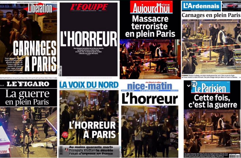 “Carneficina, “Mattanza”, “Orrore”, “Guerra”. La stampa mondiale non usa mezzi termini per descrivere e condannare la strage di Parigi. Mentre la Francia conta i suoi morti, le prime pagine dei quotidiani si tingono di sangue documentando il terrore di chi ha vissuto in prima persona o da vicino la notte più lunga di Parigi. Nel frattempo, in Italia, è polemica per il titolo choc di “Libero”. “Bastardi islamici”, sentenzia in prima pagina il quotidiano di Maurizio Belpietro che rincara la dose nel sommario: “L’Occidente ha sbagliato tutto”.