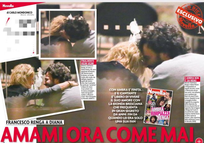 “Francesco Renga e Diana Poloni si frequentano in segreto da anni come ci riferiscono alcuni loro amici – si legge sul settimanale – ma soltanto ora si sentono più liberi di vivere il loro amore. Quando la sua compagna Ambra Angiolini ha scoperto della relazione, ha deciso di porre fine al rapporto che la legava a Renga da 15 anni”.