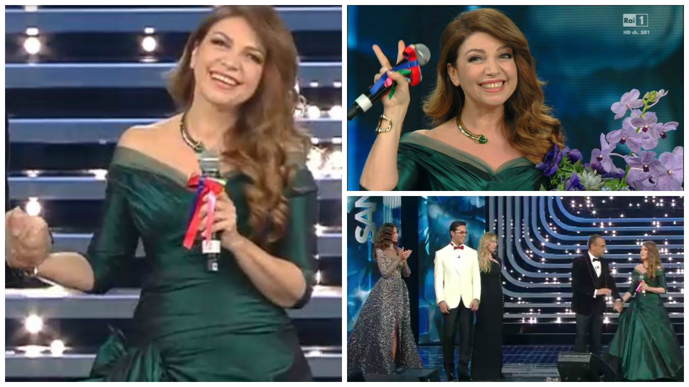 Al Festival di Sanremo si torna bambini grazie a Cristina D’Avena accolta sul palco da Carlo Conti, Gabriel Garko, Madalina Ghenea e Virginia Raffaele. La regina dei bambini è sbarcata nella Città dei Fiori dopo che il suo nome è stato oggetto di una massiccia campagna social che l’ha portata dritta all’Ariston. Stasera la cantante bolognese ha cantato un medley dei suoi più grandi successi, da “Kiss me Licia” a “Occhi di gatto”, da “La canzone dei puffi” a “Il valzer del moscerino”, brano – quest’ultimo – cantato nel 1968 allo Zecchino d’Oro. Ma la signora delle sigle e dei cartoni animati, con 7 milioni di dischi in 30 anni di carriera, ha proposto anche “La pioggia” di Gigliola Cinquetti. Cristina ha sfoggiato il microfono rainbow.