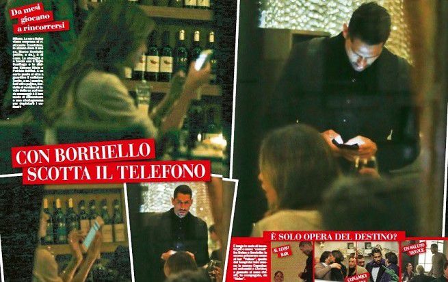 La showgirl era a cena con Santiago e con le amiche Simona Miele e Patrizia Griffini. Mentre armeggiava con il cellulare, Borriello si è materializzato nel locale, anche lui con lo smartphone in mano intento a scrivere messaggi. Il calciatore si è poi avvicinato al tavolo della Rodriguez.