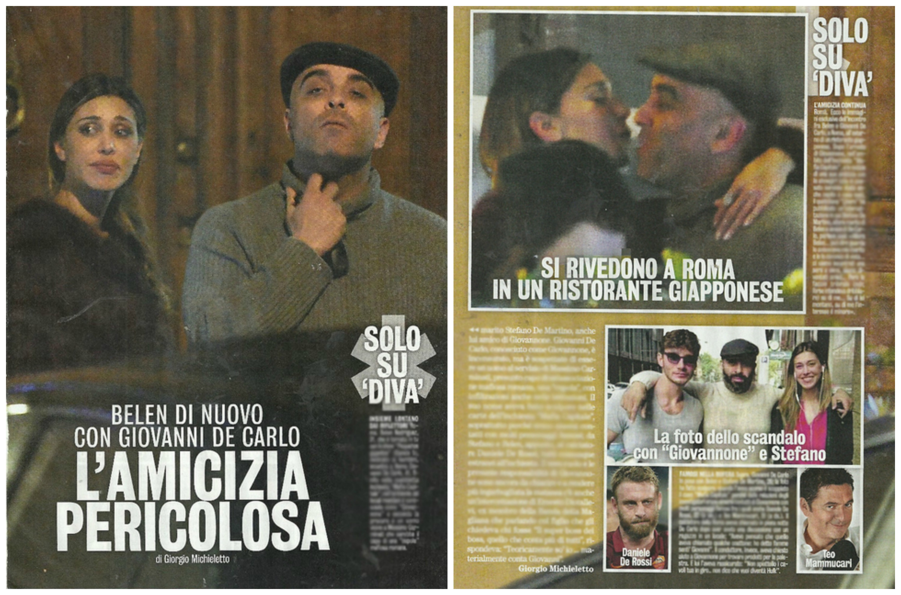 “Amicizia pericolosa” è il titolo scelto da “Diva e Donna” per il reportage fotografico che documenta l’incontro, a Roma, tra Belen Rodriguez e Giovanni De Carlo. Quest’ultimo, noto come “Giovannone”, è stato arrestato nell’ambito dell’inchiesta “Mafia Capitale”.