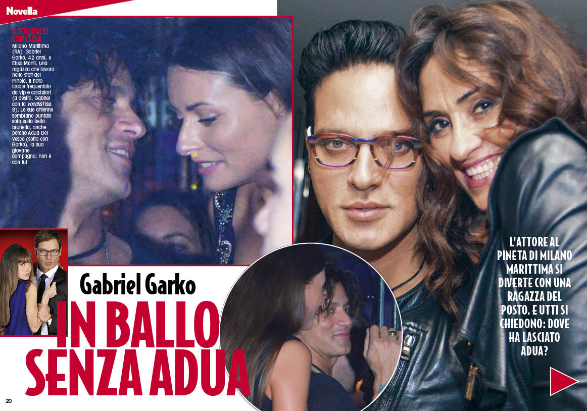 Gabriel Garko è stato paparazzato da “Novella 2000” a Milano Marittima all’interno del Pineta, il noto locale frequentato da vip e calciatori. L’attore, che non era accompagnato dalla fidanzata messinese Adua Del Vesco, è stato fotografato con Elisa Monti, una ragazza che lavora nella staff della discoteca. “Le sue antenne sembrano puntate solo sulla bella brunetta”, si legge sul magazine.