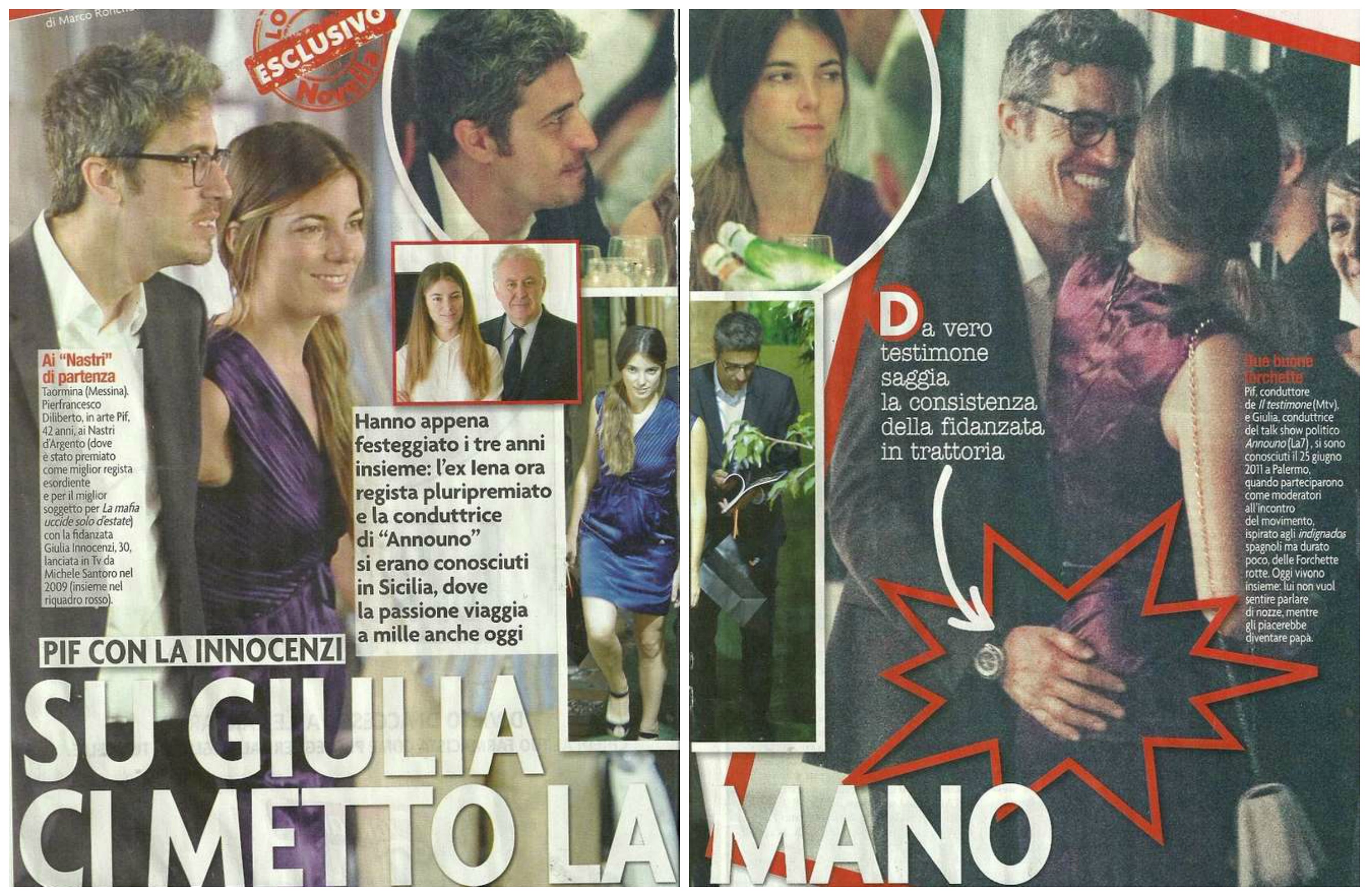 A giugno del 2013 Pif uscì allo scoperto con la giovane giornalista rivelando la loro liaison al settimanale “Oggi”. Galeotta fu Palermo, città natale di Pierfrancesco Diliberto. “Ci siamo conosciuti al corteo di un movimento giovanile che è sparito dopo un mese, il Movimento delle forchette rotte”, raccontò.