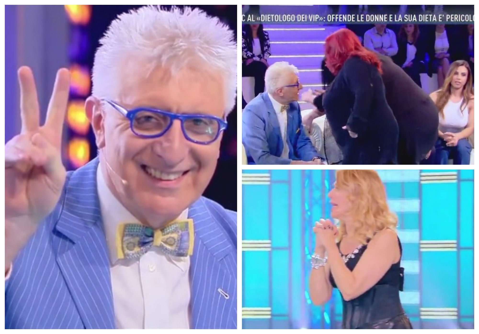 Panico negli studi di “Domenica Live”. Durante l’ennesimo dibattito sui metodi di dimagrimento proposti dal farmacista-bioscultore Alberico Lemme, sono volati ceffoni e offese. Il dietologo dei vip è stato schiaffeggiato dalla madre di una ragazza di 190 chili, tale Concetta, seduta tra il pubblico. “Lei non si deve permettere di chiamare cicciona mia figlia! Lei non sa cosa ha passato!”, ha urlato la donna prima di colpirlo. La prima ad avvicinarsi a Lemme è stata proprio Concetta. “Se lei vuole vedere come picchia una cicciona….”, ha detto minacciando il dietologo. Ma a passare ai fatti è stata per l’appunto la madre che nel frattempo l’aveva raggiunta. Inutili i tentativi di Barbara D’Urso di bloccare la donna. Mentre la madre “puniva” il “dottore” per le offese, Concetta si è allontanava gridando “Buffone di m****”. Il dietologo non ha perso l’aplomb e ha replicato: “Queste sono le donne! Sono le dimostrazioni delle teste di donne!”.