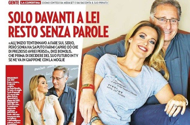 Paolo Bonolis e Sonia Bruganelli mettono da parte la loro riservatezza e, alla soglia di un traguardo importante (14 anni di matrimonio, ndr.), accettano di parlare della loro vita privata in un’intervista a “Gente”. La coppia, al momento, è in viaggio in Giappone. Lontano dall’Italia, probabilmente, il conduttore deciderà il suo futuro professionale in bilico tra Rai e Mediaset.