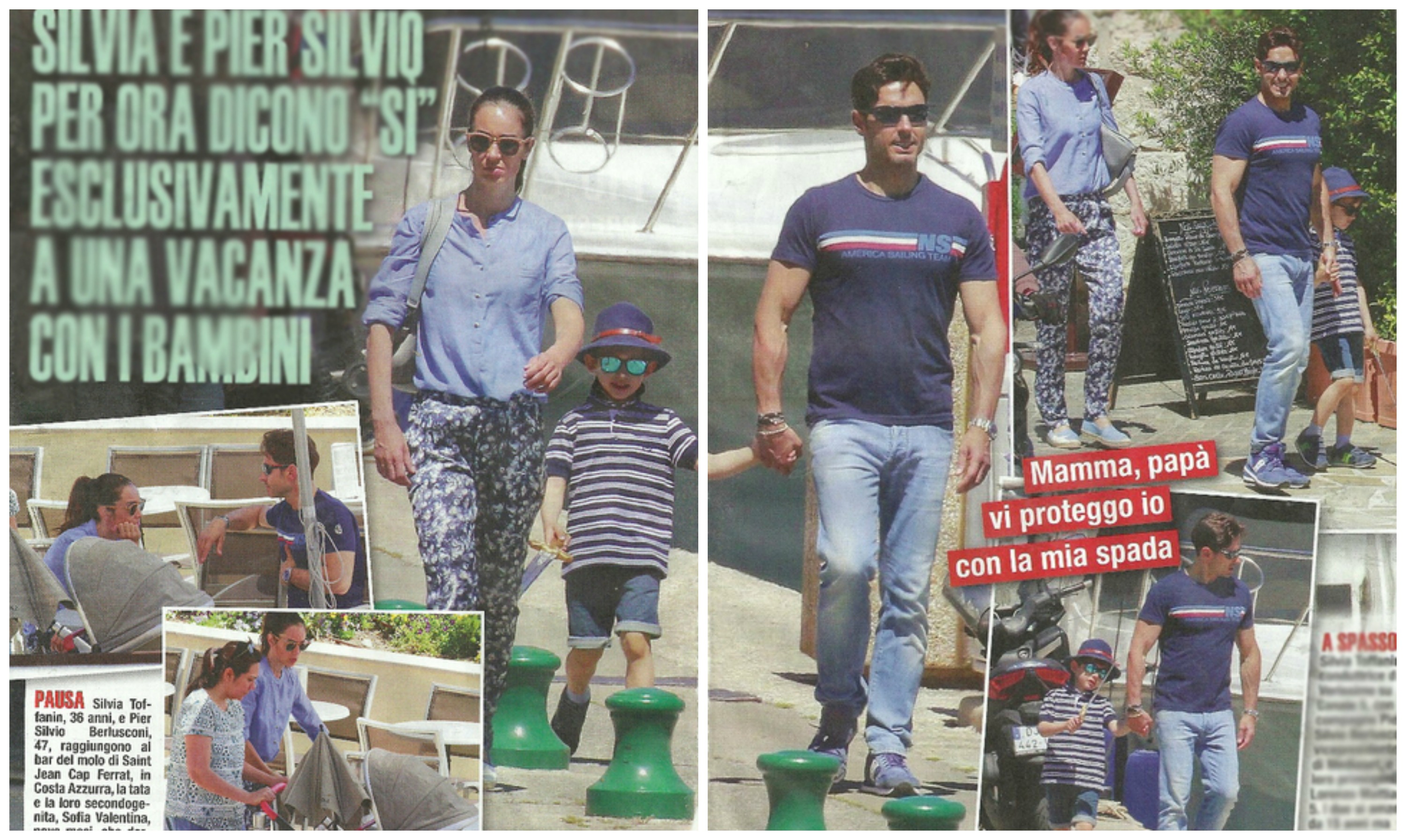 Dopo aver fatto sapere che il matrimonio può attendere, Silvia Toffanin e Pier Silvio Berlusconi si rilassano a Saint-Jean-Cap-Ferrat, in Costa Azzurra, in compagnia dei figli Lorenzo Mattia e della piccola Sofia Valentina. Le immagini, pubblicate dal settimanale “Mio”, sono antecedenti al malore che ha colpito Silvio Berlusconi (proprio in queste ore l’ex premier sta subendo un delicato intervento al cuore, ndr.).