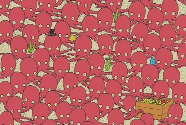 Dopo i panda tra i pupazzi di neve, i gatti tra i gufi e l’uovo tra i coniglietti, ecco un nuovo rompicapo a tema subacqueo: riuscite a trovare il pesciolino nascosto in mezzo ai polipi? A lanciare la sfida è ancora una volta il disegnatore ungherese Gergely Dudas. Conosciuto anche come ”The Dudolf”, è diventato un esperto di rompicapi e anche stavolta ha inserito delle distrazioni per confondere le idee a chi cerca di indovinare.