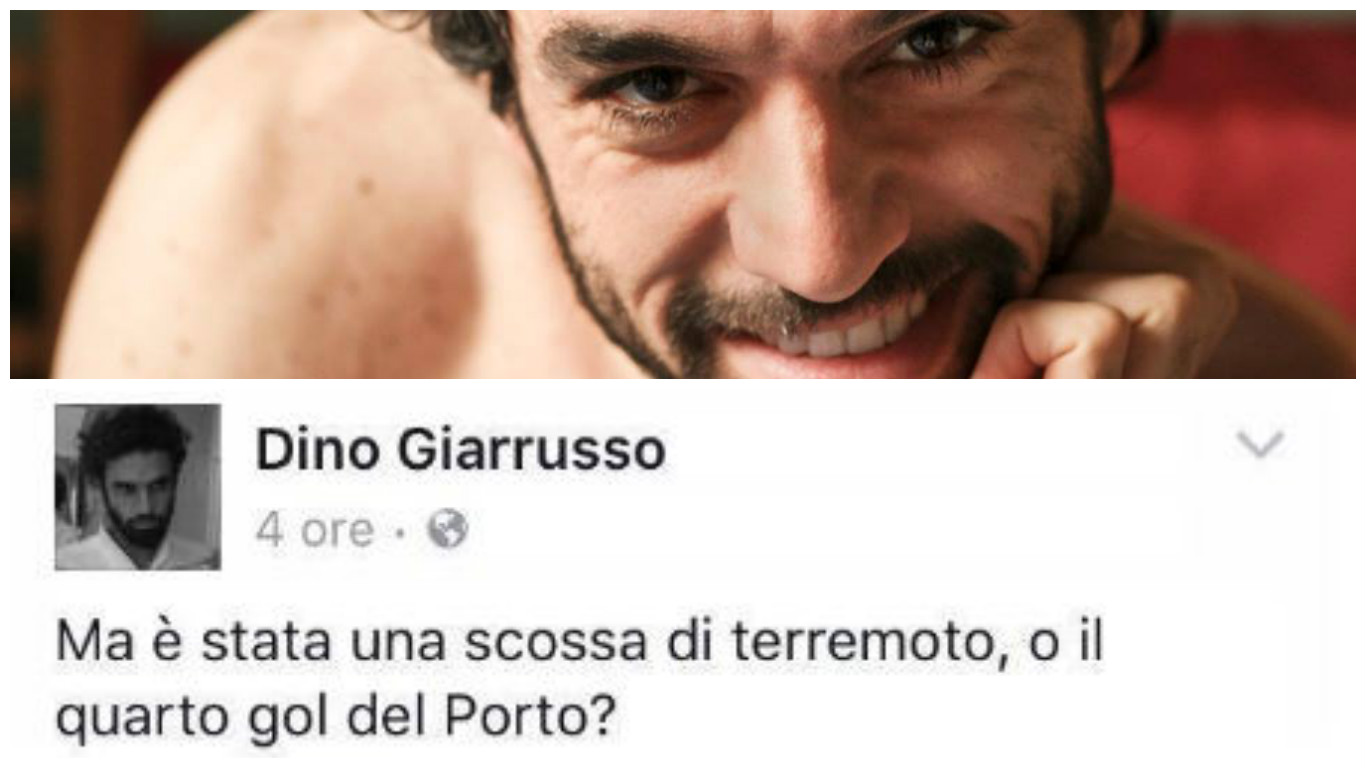 Nelle ore successive al devastante sisma che ha colpito il Centro Italia, Dino Giarrusso si è reso protagonista di una gaffe che ha scatenato il putiferio sui social. “Ma è stata una scossa di terremoto o il quarto gol del Porto?”, ha scritto la Iena catanese su Facebook.