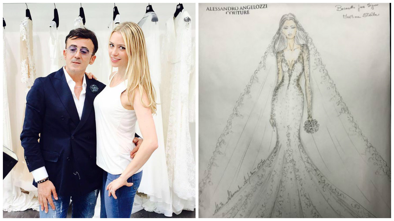 Le nozze saranno celebrate a Sutri, in provincia di Viterbo. Oggi lo stilista Alessandro Angelozzi, che ha firmato l’abito da sposa di Martina, ha svelato il bozzetto a “Vanity Fair”. Il designer, che in passato ha ideato e realizzato l’abito da sposa di Elisabetta Canalis, svela qualche particolare alla rivista patinata.