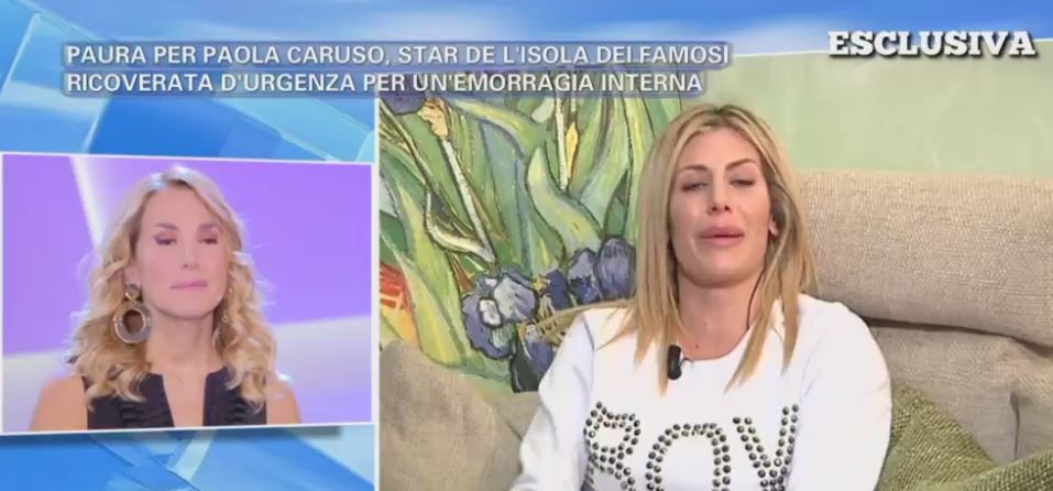 Ospite di “Pomeriggio Cinque”, in collegamento dall’appartamento in cui sta trascorrendo un periodo di convalescenza, Paola Caruso racconta la grande paura. L’ex naufraga de “L’Isola dei Famosi”, ricoverata ed operata d’urgenza per un’emorragia interna, se l’è vista davvero brutta.