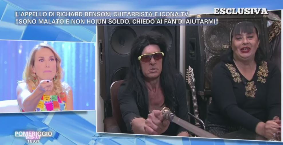 Richard Benson è stato ospite ieri di “Pomeriggio Cinque” con la moglie Ester. Il rocker di origine britannica ha raccontato di avere gravi problemi al cuore e di essere in condizioni economiche precarie.