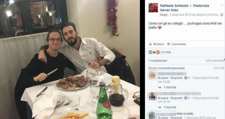 Va al ristorante con un amministratore del gruppo, Alessandro Falanga, si fa fotografare davanti a un piatto di carne con un bel coltello in mano e vai con le battute: “Gli occhi di chi ne ha viste tante, il coltello di chi le ha affettate tutte!. Qualcuno scrive: “Dal colore della carne direi che è Rudy” e Raffy: “Ahahah questa è simpatica!”. Qualcuno monta la testa di Patrick Lumumba (colui sul quale Amanda tentò di scaricare le colpe) sulla testa dell’amministratore del gruppo Pastorizia never dies e Raffy se la ride di gusto.