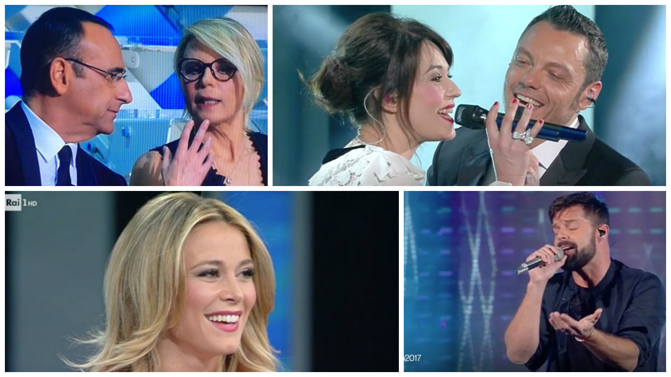 Giusy Ferreri, Fabrizio Moro, Elodie, Lodovica Comello, Fiorella Mannoia, Alessio Bernabei, Al Bano Carrisi, Samuel, Ron, Clementino ed Ermal Meta sono i big che rompono il ghiaccio durante la prima serata. Ospiti, oltre a Tiziano Ferro e Carmen Consoli, anche Ricky Martin, Clean Bandit, Diletta Leotta e le coppie Raoul Bova-Rocio Morales, Antonio Albanese-Paola Cortellesi.