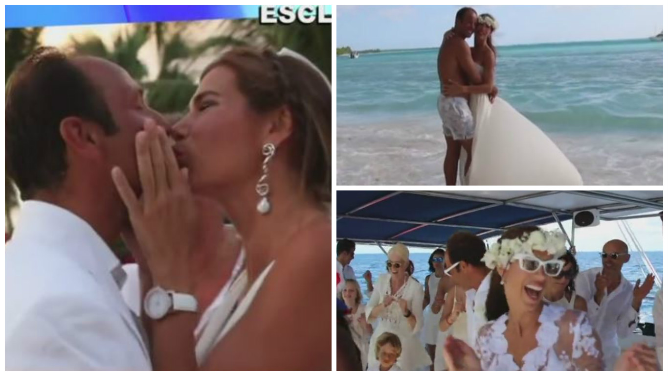 La sposa ha svelato qualche aneddoto sul giorno delle nozze: “Alle 7 e mezzo, la sottoscritta ha preparato la colazione per 40 invitati a casa”. Poi a bordo di un battello, dove sposi ed invitati hanno un po’ esagerato con i Cuba Libre, hanno raggiunto la spiaggia in cui si è svolta la cerimonia.