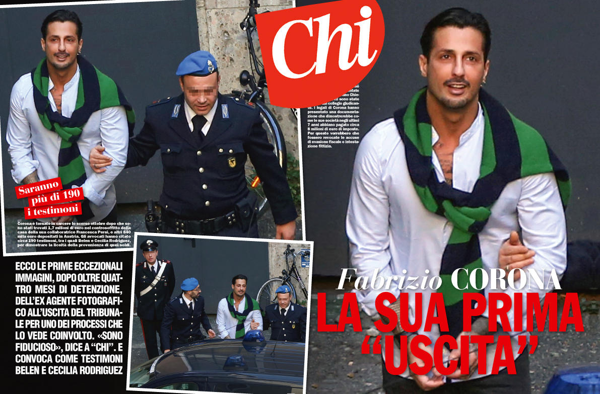 Il settimanale “Chi” esce in edicola con le prime foto di Fabrizio Corona fuori dal carcere dopo quattro mesi di detenzione. L’ex re dei paparazzi è stato fotografato all’uscita dal tribunale di Milano dopo la prima udienza del processo che lo vede imputato per intestazione fittizia di beni, frode fiscale e violazione delle norme patrimoniali sulle misure di prevenzione. “Sono fiducioso”, ha dichiarato al magazine diretto da Alfonso Signorini prima di tornare nella sua cella.