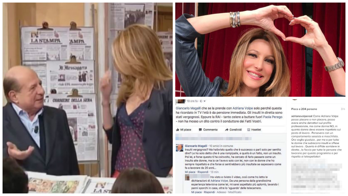 Immediata la risposta di Adriana Volpe su Instagram: “Come Adriana Volpe posso piacere o non piacere, posso avere anche detrattori sul profilo professionale, ma come donna NO, in quanto donna devo essere rispettata sul posto di lavoro . Persevera con un comportamento sessista e maschilista. Ora voglio giustizia , per me e per tutte le donne che subiscono insulti e offese sul lavoro . Quanto è diffide sorridere in diretta , lo faccio per tutte le persone che lavorano per questo programma e per rispetto ai telespettatori”.