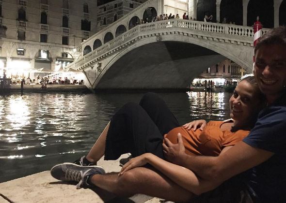 La coppia posa sotto il Ponte di Rialto e la foto è accompagnata dall’hashtag #noi3 con tanto di cuoricino. Sahra sfoggia il pancione con orgoglio.