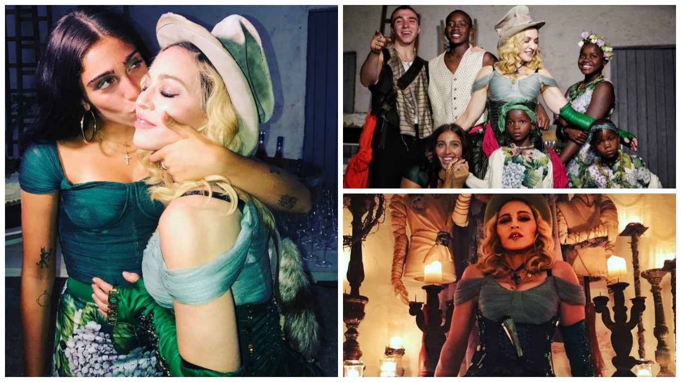 Il 16 agosto, giorno del suo compleanno, ha indossato crocifisso e gonna a palloncino e si è fatta fotografare tra i pomodori pronti per trasformarsi in salsa. Quindi è giunta alla masseria per i festeggiamenti. Una sessantina gli invitati tra cui lo stilista Riccardo Tisci, originario di Palagianello, lo stesso paese da cui provengono i Terraross, il gruppo di musica popolare voluto dalla popstar come colonna sonora delle due feste. A Borgo Egnazia c’erano anche i 6 figli di Madonna: Lourdes Maria, detta Lola, Rocco, David Banda, Mercy James e le gemelline Stella e Esther Mwale adottate in Malawi lo scorso febbraio.
