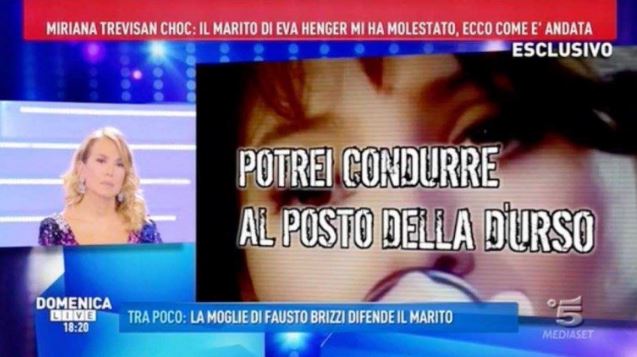 “Oggi avrebbe dovuto essere qui Miriana Trevisan che ha accusato pesantemente il marito di Eva Henger – spiega la padrona di casa – La sua partecipazione era concordata da giorni, già fatti i biglietti aerei, tutto organizzato. Ieri sera Miriana ha detto che le è subentrato un problema personale. Un problema personale che io rispetto e lei non è qui”.