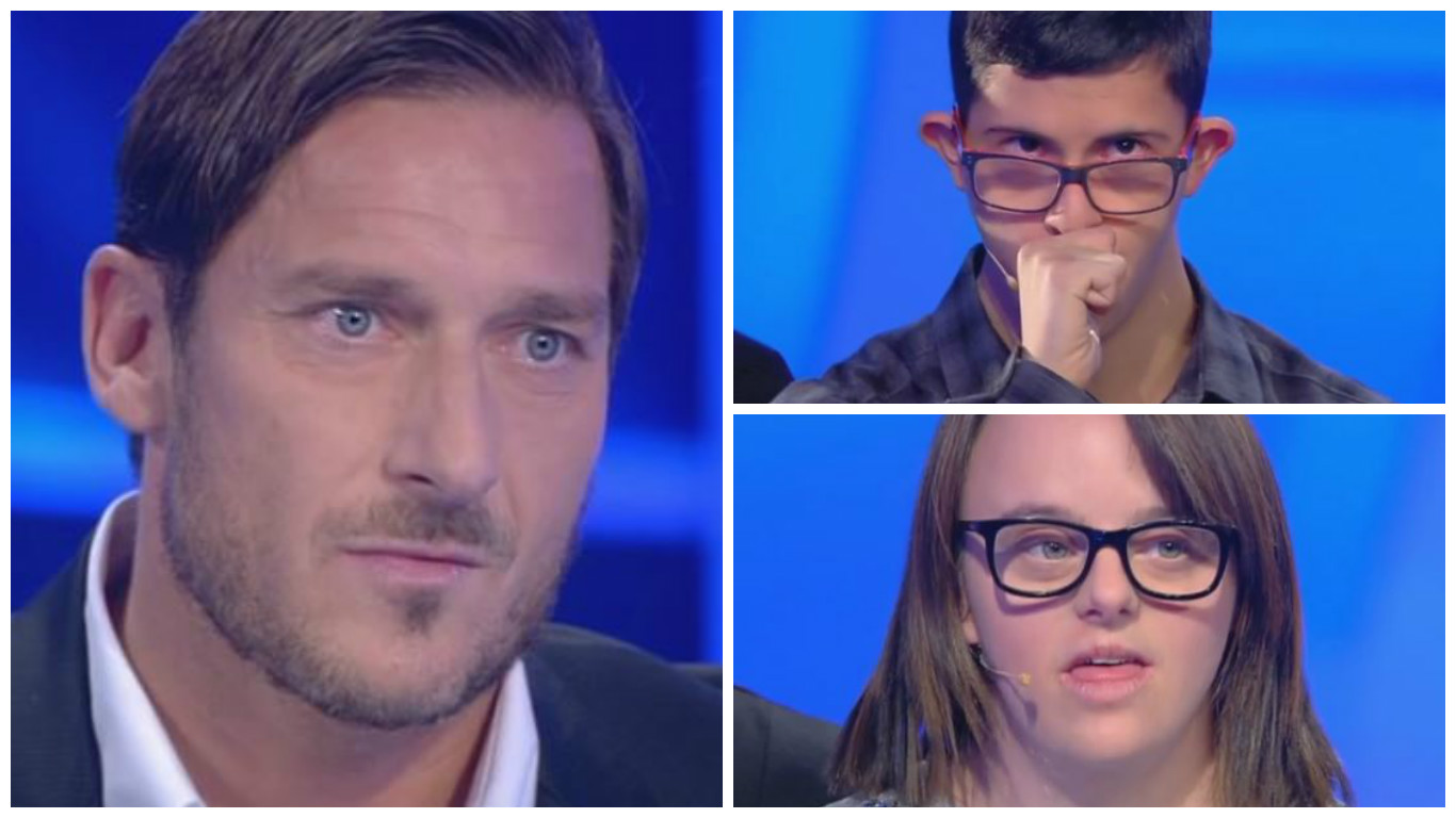 I telespettatori sono diventati 6 .907.000 nel momento in cui in studio si è materializzato Francesco Totti. La leggenda del calcio italiano è stata la sorpresa di Cristina, Simone e Francesco a tre ragazzi con la sindrome di Down che, oltre alla passione per l’ex capitano della Roma, hanno in comune anche l’essere tirchi e troppo possessivi nei confronti delle proprie cose.