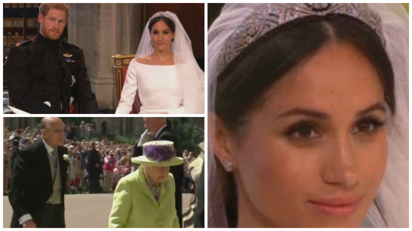Meghan Markle indossava un abito sobrio e minimal con scollatura a barca accompagnato da un lungo velo trattenuto da una tiara. Come acconciatura, ha scelto uno chignon basso. Durante la cerimonia, è stato diffuso il nome della stilista che ha disegnato il vestito da sposa. Si tratta di Clare Waight Keller, direttrice creativa di Givenchy. Il principe Harry ha optato per la divisa militare, come il fratello William, suo testimone di nozze. Kate Middleton ha sfoggiato un abito “riciclato” abbinato ad un cappottino giallo pallido, Camilla Parker Bowles ha scelto il rosa, mentre la regina Elisabetta e la madre della sposa hanno preferito il verde. Tra i paggetti non sono passati inosservati i figli di William e Kate, George e Charlotte. Meghan ha deciso di rinunciare alla damigella d’onore.