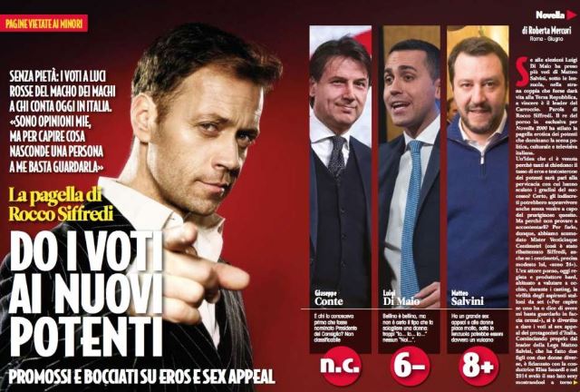 Interpellato da “Novella 2000” sulla virilità e sul sex appeal di alcuni vip nostrani, Rocco Siffredi – grande esperto del settore – si è divertito a dare i voti. “Sono opinioni mie, ma per capire cosa nasconde una persona a me basta guardarla”, ha precisato.
