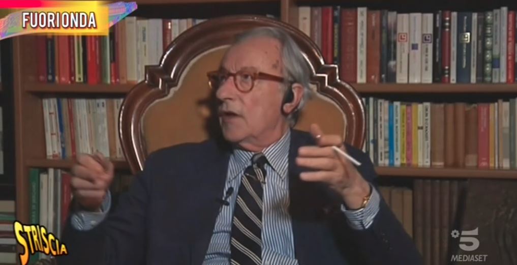 “In particolare Striscia la Notizia mi ha insultato ripetutamente – prosegue – Il conduttore, Greggio, noto per i suoi fallimenti cinematografici, ha tentato di imitarmi, non certo al livello di Crozza, facendomi fare la figura di uno che straparla dopo essersi ingollato litri di whisky, il che è non solamente paradossale, poiché mai alcuno mi può aver visto brillo, ma anche insultante per la mia dignità di professionista dell’informazione. Va da sè che rifiuto di lavorare per le emittenti, compresa Retequattro, di Mediaset. Se l’azienda di Berlusconi mi sputa in faccia, come minimo sono costretto a restituirle schizzi di saliva evitando di frequentarla a qualsiasi titolo”.