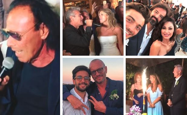 Il ricevimento si è trasformato in un mega concerto che ha visto esibirsi i big della musica nostrana con tanto di reunion dei Pooh e della coppia D’Alessio-Tatangelo.