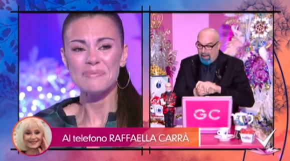 “Detto Fatto”, Raffaella Carrà telefona in diretta e Bianca Guaccero scoppia in lacrime