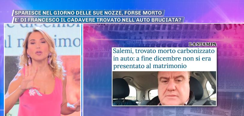 Qualche giorno fa, all’interno di un’auto distrutta dal fuoco, risultata intestata proprio a Ciaravolo, è stato rinvenuto un corpo carbonizzato. Le indagini sono in corso per risalire all’identità della vittima. Il sospetto è che si tratti proprio del mancato sposo. Nell’attesa di conoscere i risultati dell’esame del Dna, la troupe Mediaset è sbarcata in Sicilia per raccontare la vicenda.
