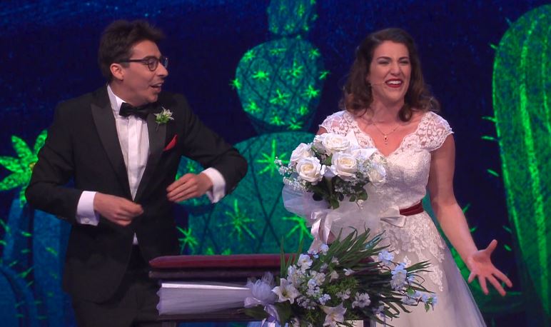 Nel cast anche iSoldiSpicci, coppia cult del web. Il duo comico palermitano formato da Claudio Casisa e Annandrea Vitrano ha proposto un esilarante sketch sul matrimonio. La Vitrano nei panni della fidanzata pesante ed ingombrante ansiosa di impalmare il suo amato e fare terra bruciata attorno a lui eliminando anche la suocera ha spinto il “povero” Casisa a scappare a gambe levate dall’altare “di spine” prendendo una drastica decisione.