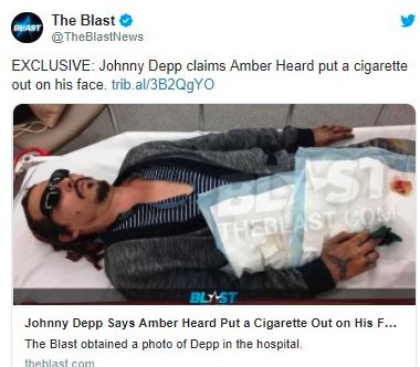 Nel frattempo, però, Depp ha intentato una causa per diffamazione da 50 milioni di dollari contro l’ex moglie che lo aveva accusato di maltrattamenti arrivando a mostrare i lividi. Adesso l’interprete del film “I pirati dei Caraibi” passa al contrattacco e denuncia di essere stato aggredito dalla Heard nel 2015. In quell’occasione, l’attrice gli avrebbe spento una sigaretta sulla guancia come si evincerebbe da uno scatto pubblicato da “The Blast” che mostra Johnny Depp in ospedale, disteso su una barella, con una bruciatura sul viso in corrispondenza della guancia destra e il dito medio fasciato.