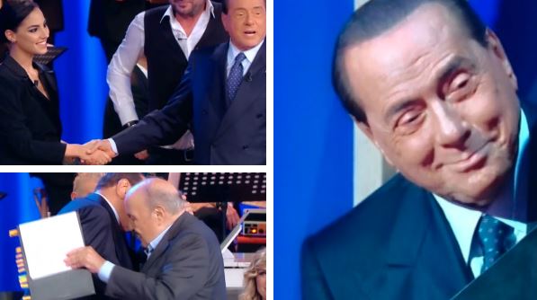 Il siparietto è proseguito. “Bisogna rinnovare, bisogna ringiovanire. Tu e io siamo dei vecchietti. Abbiamo un piede nella tomba. Tu quale hai?”, ha chiesto l’ex premier. Il conduttore ha replicato facendo il gesto delle corna.