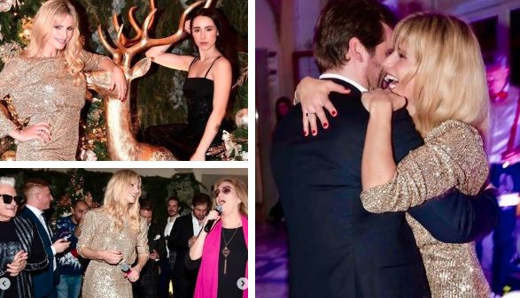 La conduttrice svizzera ha danzato con il consorte e si è divertita a “spararsi le pose” con la figlia Aurora Ramazzotti scortata dal fidanzato Goffredo Cerza.