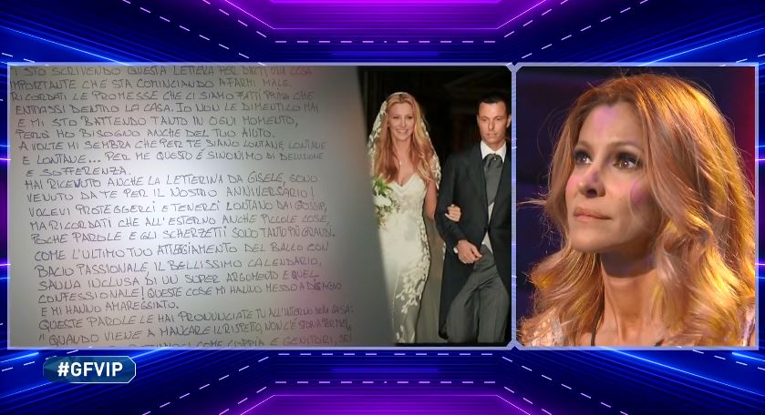 “Ti scrivo questa lettera per dirti una cosa importante che sta cominciando a farmi male – dice il marito della Volpe – Ricordati le promesse che ci siamo fatti prima che entrassi dentro la casa. Io non le dimentico mai e mi sto battendo tanto in ogni momento. Però ho bisogno anche del tuo aiuto. A volte mi sembra che per te siano lontane, lontane e lontane…per me questo è sinonimo di delusione e sofferenza. Hai ricevuto anche la letterina di Gisele, sono venuto da te per il nostro anniversario! Volevi proteggerci e tenerci lontano dai gossip ma ricordati che all’esterno anche piccole cose, poche parole e gli scherzetti sono tanto più grandi. Come l’ultimo tuo atteggiamento del ballo con bacio passionale, il bellissimo calendario e quel confessionale! Queste cose mi hanno messo a disagio e mi hanno amareggiato. Queste parole le hai pronunciate tu all’interno della casa: ‘Quando viene a mancare il rispetto non c’è storia per me’. Ti prego, rispettiamoci come coppia e genitori, sei una mamma e una moglie. Non ti chiedo di essere una suora laica ma ricordati chi siamo. Sono io il primo a sostenerti ma aiutami anche tu. Hai la possibilità stando all’interno della casa di dimostrare la solidità del nostro rapporto e della nostra famiglia. Ricordati sempre che io e Gisele ti aspettiamo e ti amiamo. Vinci per noi. Con amore. Roberto”.