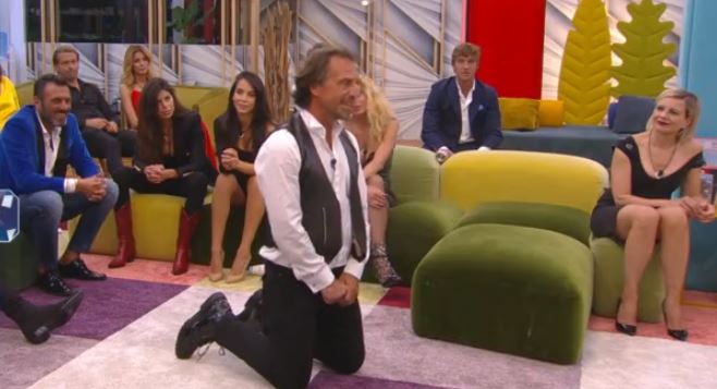 Grande Fratello Vip, Antonio Zequila si inginocchia in diretta e lascia tutti a bocca aperta