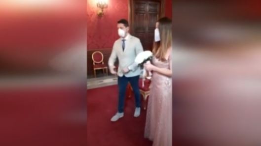 Dire sì ai tempi del coronavirus. Anna e Alessio hanno deciso di sposarsi a Roma con una cerimonia civile a porte chiuse. Insieme a loro, solo i due testimoni: il papà di lei, Claudio, e la mamma di lui, Loredana. I due si sono scambiati le fedi indossando le mascherine. Quella della sposa era di raso bianco, cucita a mano dalla mamma di Alessio. Anna ha fatto tutto da sola, dai capelli al trucco. In mano aveva un bouquet di finte roselline bianche ordinate su internet. Dopo il sì, è stato il momento del pranzo di nozze casalingo. Nessun banchetto, nessuna festa. A casa li aspettava il loro figlioletto di 19 mesi e la figlia di Anna di 7 anni.