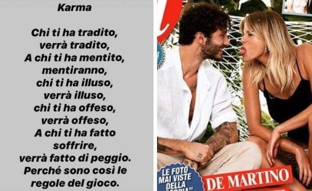 Oggi, mentre “Chi” usciva in edicola, Belen ha pubblicato una pungente Instagram Story dedicata al karma: “Chi ti ha tradito, verrà tradito. A chi ti ha mentito, mentiranno. Chi ti ha illuso, verrà illuso. Chi ti ha offeso, verrà offeso. A chi ti ha fatto soffrire, verrà fatto di peggio. Perché sono così le regole del gioco”.