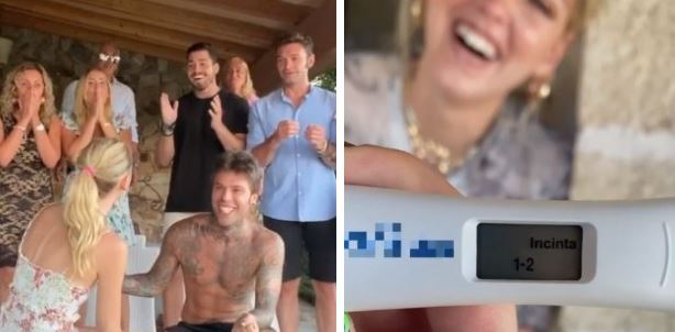 Sardegna, fine luglio. Sono presenti quasi tutti: i genitori di Fedez, la mamma, le sorelle e i cognati di Chiara (manca solo il padre di lei, ndr.). Il rapper e l’influencer si inventano un finto TikTok da girare tutti insieme. Alla fine del countdown, come da istruzioni, dovranno ripetere le movenze della coppia. Terminato il conto alla rovescia, spetta a Fedez annunciare che la moglie è incinta.