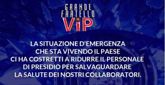 “La situazione d’emergenza che sta vivendo il Paese – recita la nota – ci ha costretti a ridurre il personale di presidio per salvaguardare la salute dei nostri collaboratori. Per questo, almeno per il momento, la Regia 2 non sarà più disponibile né sul sito di Grande Fratello Vip, né su Mediaset Play. La Regia 1 e il Canale +1, invece, continueranno a funzionare regolarmente”.