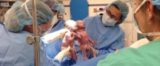 La gravidanza portata avanti da Sarah Thistlewaite è già di per sè un evento raro. La newyorkese ha tenuto in grembo per nove mesi due gemelle monoamniotiche o “scimmia”, ovvero due feti che condividono il sacco amniotico e la placenta. Nate nel giorno della festa della mamma, le due bimbe, chiamate Jenna e Jillian, hanno commosso il mondo venendo alla luce mano nella mano.