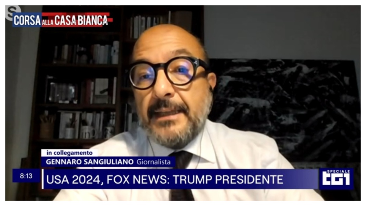 Gennaro Sangiuliano è stato presentato come “ex ministro, direttore, giornalista e grande esperto di Stati Uniti”. La sua apparizione non è passata inosservata. “4 settembre – 6 novembre Dal Tg1 al Tg1 In due mesi dal Sangiuliano ministro al Sangiuliano ‘opinionista’”, ha ironizzato su X Giuseppe Candela, penna di “Dagospia” e del “Fatto Quotidiano”. “Gennaro Sangiuliano festeggia su X la vittoria di Trump pubblicizzando la biografia del presidente eletto da lui vergata”, sottolinea il sito di Roberto D’Agostino.
