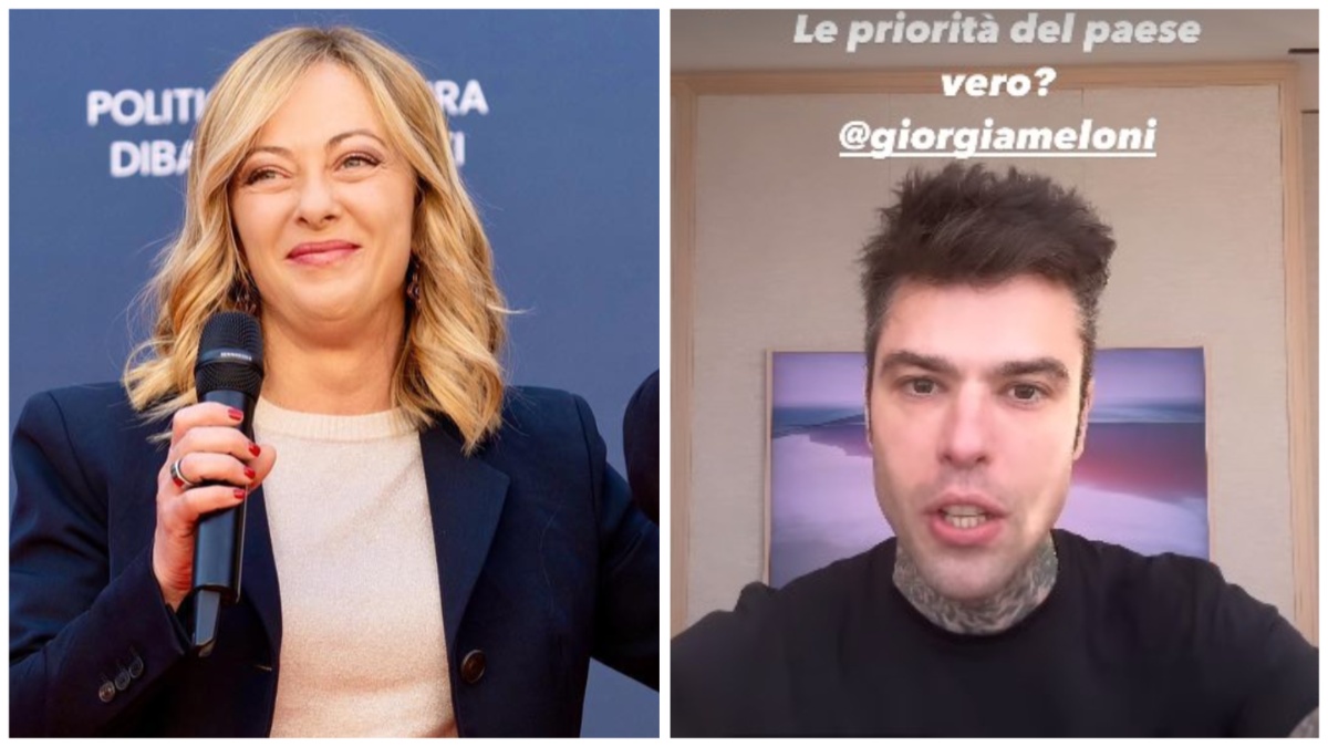 “Evento alquanto singolare – ha proseguito il rapper – è che pochi minuti fa la presidente del Consiglio Giorgia Meloni, sul palco della sua fantastica festa del partito, abbia deciso di salire sul palco e di parlare delle priorità del Paese. Avrà parlato della disoccupazione giovanile? Della manovra finanziaria che stanno facendo con il c*lo e che non hanno ancora finito? Della pressione fiscale del Paese? No. Ha deciso di dire che bisogna diffidare dalle persone che lavorano sul web. Questa è la priorità del nostro presidente del Consiglio. Questo mi fa pensare che questo avvenimento sia stato attenzionato dalla politica in quanto prioritario per il nostro presidente del Consiglio. E mi fa sorridere che un politico dica di diffidare dalle persone che lavorano sul web, quando noi dovremmo diffidare da voi politici per tutto il pregresso a cui ci avete abituato”.