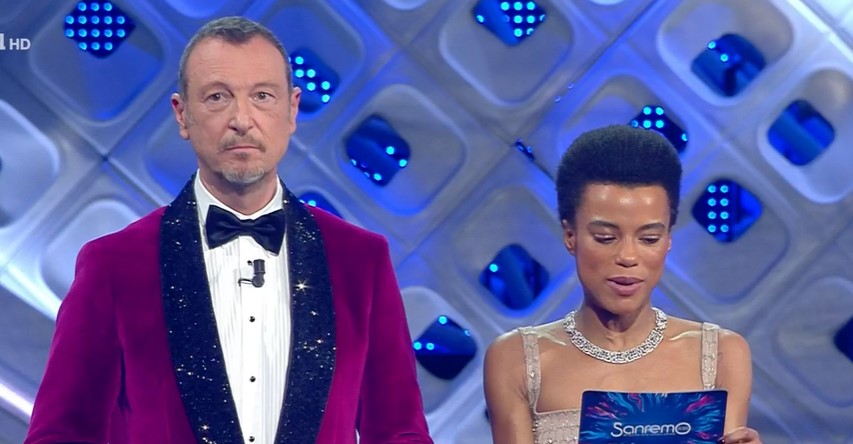 - Lo stesso Amadeus lo punzecchia: “A volte capita che per la fretta uno si dimentichi la giacca”